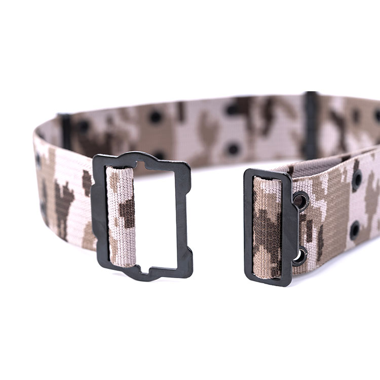 The end that is joined to the adjustable buckle is hemmed to prevent the adjusting tapes of the belt from coming out of this; the other end is joined to the belt adjusting tapes.