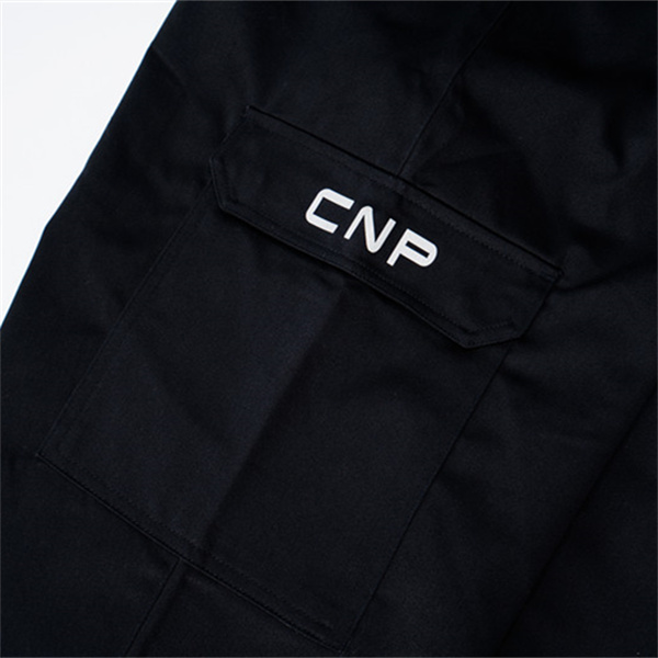 Long pants, made in high color fastness fabric with waterproof treatment. The pants is made by: legs, flies flap, waistband and pockets.Made of four pieces: two fronts and two backs. They joint by crotch, using funnel seams. The bottoms is hemmed.