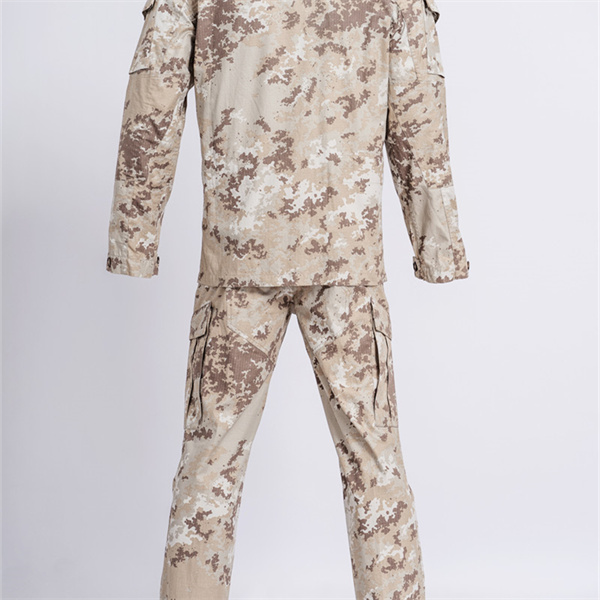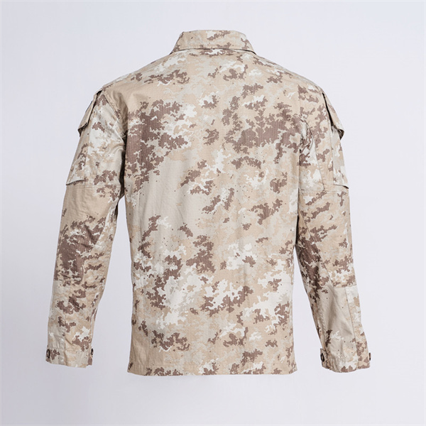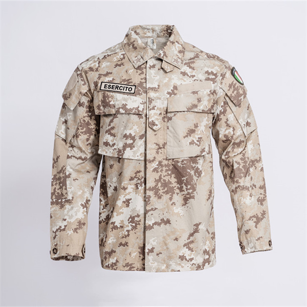 The front and back part, are made from a single piece of fabric, Collar is straight made from a double layer fabric with a line of coverstitching from the edge. The sleeve which is closed and joined to the fronts, back and yoke by a loaded seam or a two-needled closing machine.The bottom of the sleeve finished off with an interfaced, double-fabric cuff, It is closed using a button and buttonhole. At elbow height and 110mm from the bottom of the sleeves (cuff included) a rectangular patch attached for reinforcement,The fronts have two symmetrical pockets (one on each one), attached by overstitching around the edge and finished off with bar tacks on the upper sides. They have a 25º slant with respect to the horizontal.Along the opening, have a hem measuring 20mm on which a piece of “velcro” type fabric or similar, looped part, positioned on the entire width of the outside, measuring 20mm high.