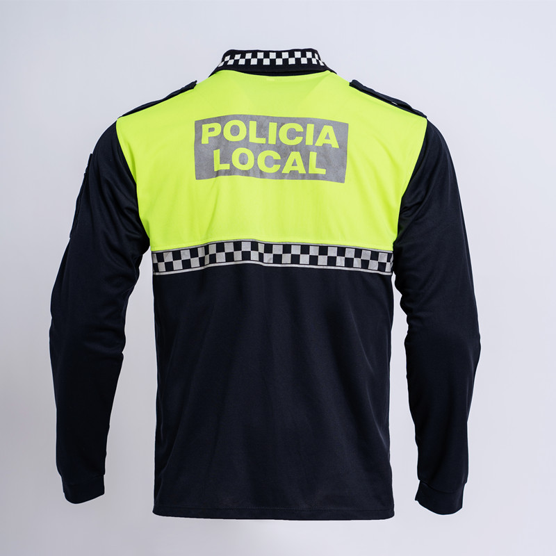 Back part is made up of two pieces: an upper piece in a high visibility yellow colour and a lower piece in a dark navy blue, is same as the front part.