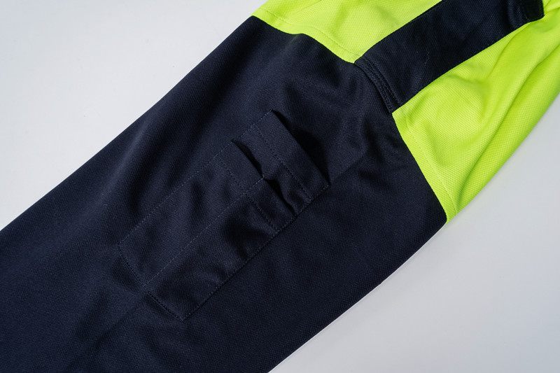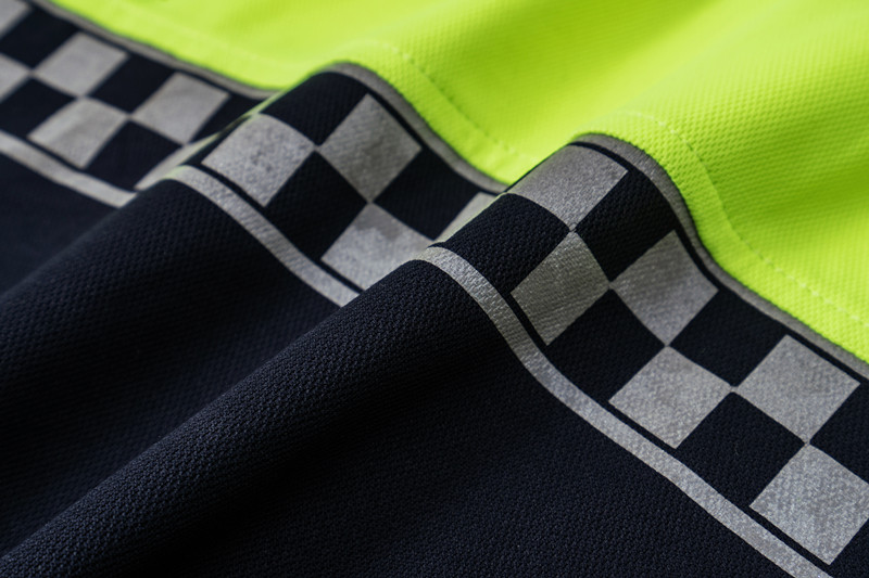 Both of front chest and back yoke there is a 5cm banding of high visibility color. Both of front chest and back yoke there is a reflective letter which meet EN 20471 standard.