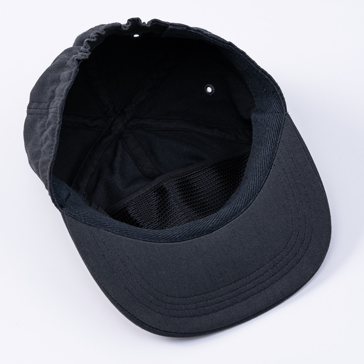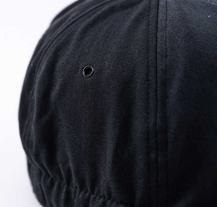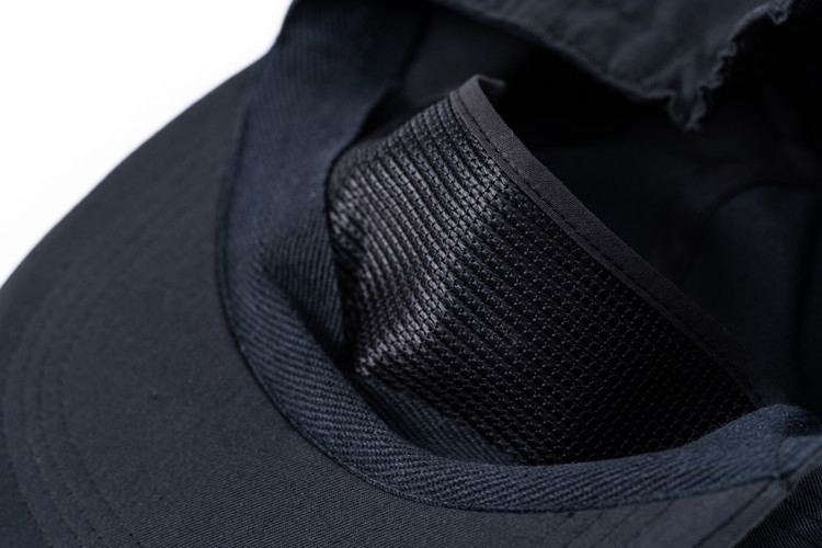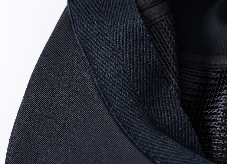 Cap’s sweatband is 30 mm wide, with two parallel lines of overstitching that are 26 mm wide, in breathable fabric and polyester foam forming a chamber for greater breathability. This sweatband is joined to the cap by a line of overstitching along the edge.