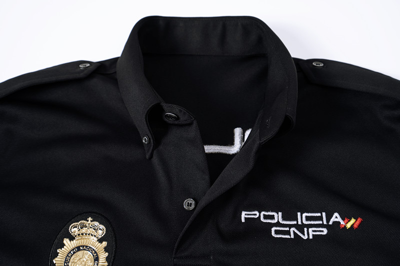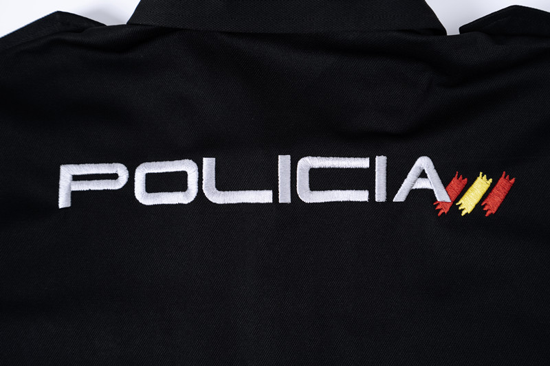 On the left front, centred horizontally the Policía Nacional logotype + flag will be positioned.