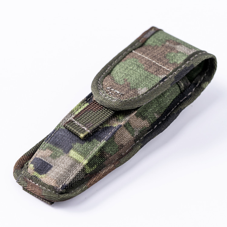 Designed to be an on-hand storage option for tactical weapon lights or compact flashlights, the Flashlight Pouch is extremely versatile and can be mounted on any platform that has universal webbing such as a battle belt, vest or range bag. The durable nylon construction ensures that the pouch will not wear down after constant use and its small size is perfect for mounting on fully loaded setups. The strap is secured via a reliable hook and loop closure that adjusts based on the mounting position. For a lightweight, compact storage option, here has you covered.