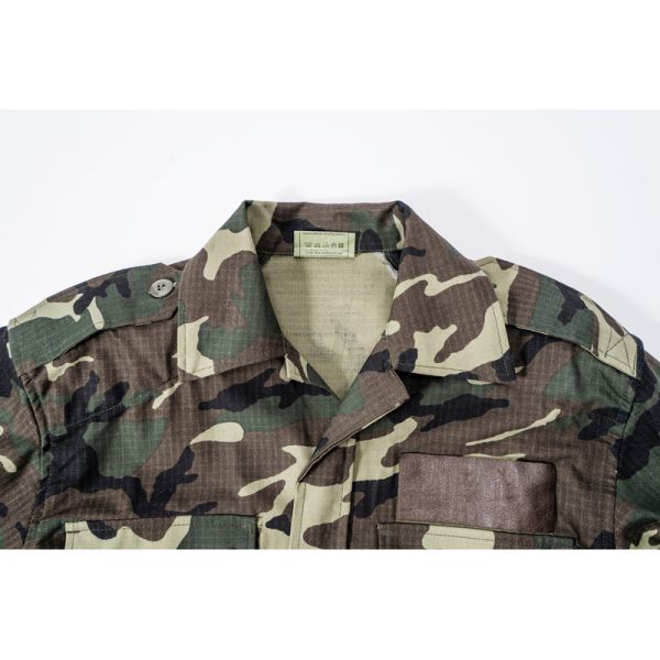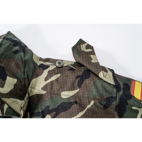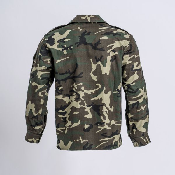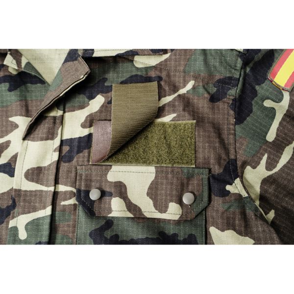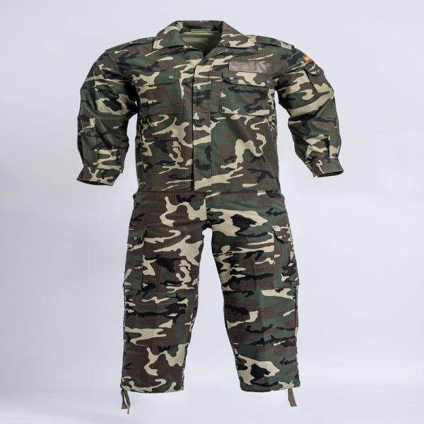 The front and back part, are made from a single piece of fabric, Collar is straight made from a double layer fabric with a line of coverstitching from the edge. The sleeve which is closed and joined to the fronts, back and yoke by a loaded seam or a two-needled closing machine.The bottom of the sleeve finished off with an interfaced, double-fabric cuff, It is closed using a button and buttonhole. At elbow height and (110 ± 5) mm from the bottom of the sleeves (cuff included) a rectangular patch attached for reinforcement,The fronts have two symmetrical pockets (one on each one), attached by overstitching around the edge and finished off with bar tacks on the upper sides. They have a 25º slant with respect to the horizontal.Along the opening, have a hem measuring (20 ± 2) mm on which a piece of “velcro” type fabric or similar, looped part, positioned on the entire width of the outside, measuring (20 ± 2) mm high.