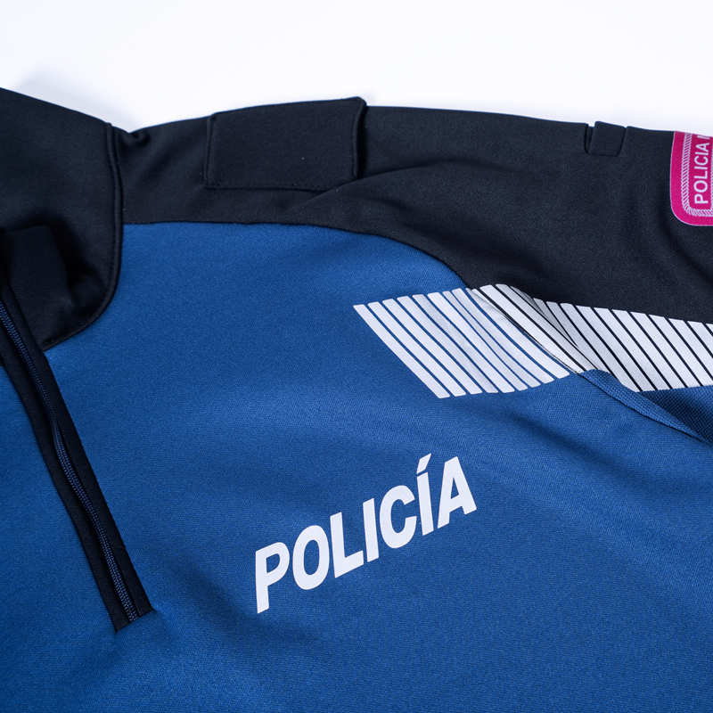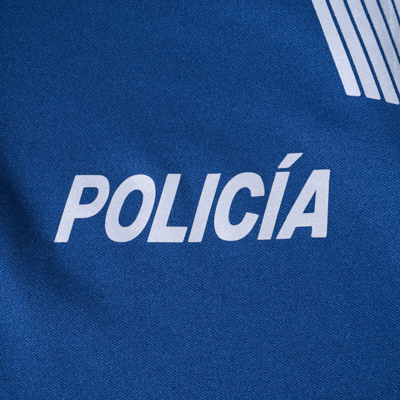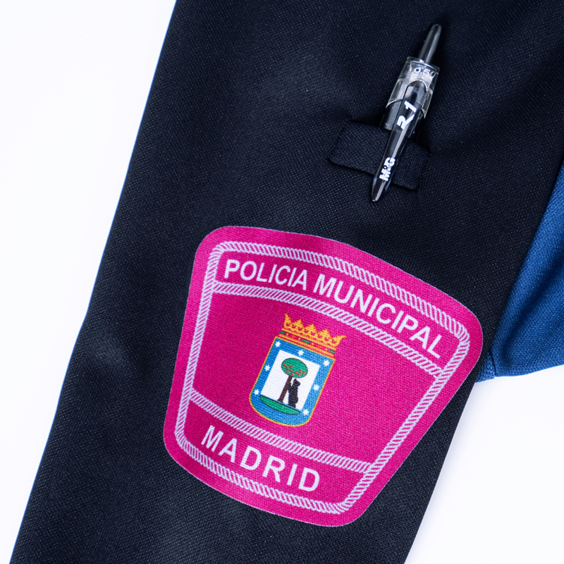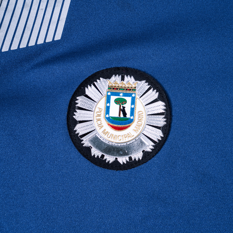 At the center of left front in chest height, 2 cm from the bottom of canesu Embroidered symbols representing the National Guard on the fabric (made of spirits and swords) Crown with a crown, in size about 45 mm x 30 mm, The assembly is positioned by industrial embroidery using polyester yarn Cork and tones are fluorine yellow, red and blue.