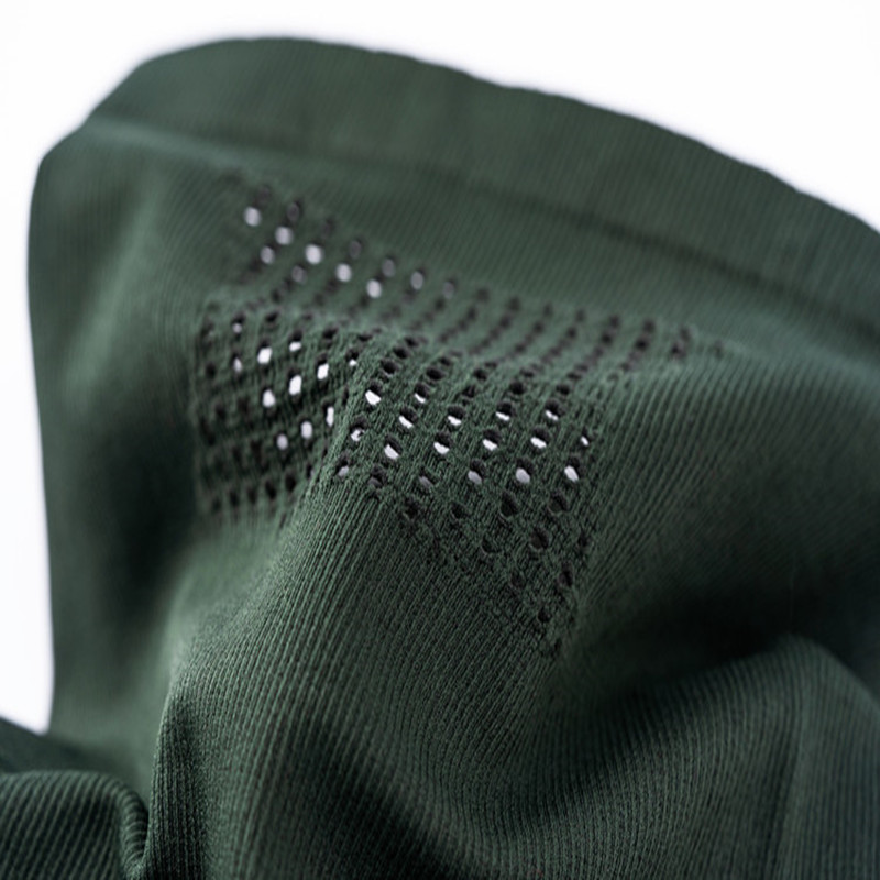 On the upper part, 32mm from the edge, it has an area with a larger mesh opening to aid breathing,this area measured 70mm high, 80mm wide at its central area and 110mm wide at the ends. When people wearing the scarf, the mesh area can cover people’s nose and mouth. It can help people take a breath easily. It will not eash go down because of fabric with elastane. The whole scarf is 60g but it is tight strength enough so no worried about going down when you are wearing.