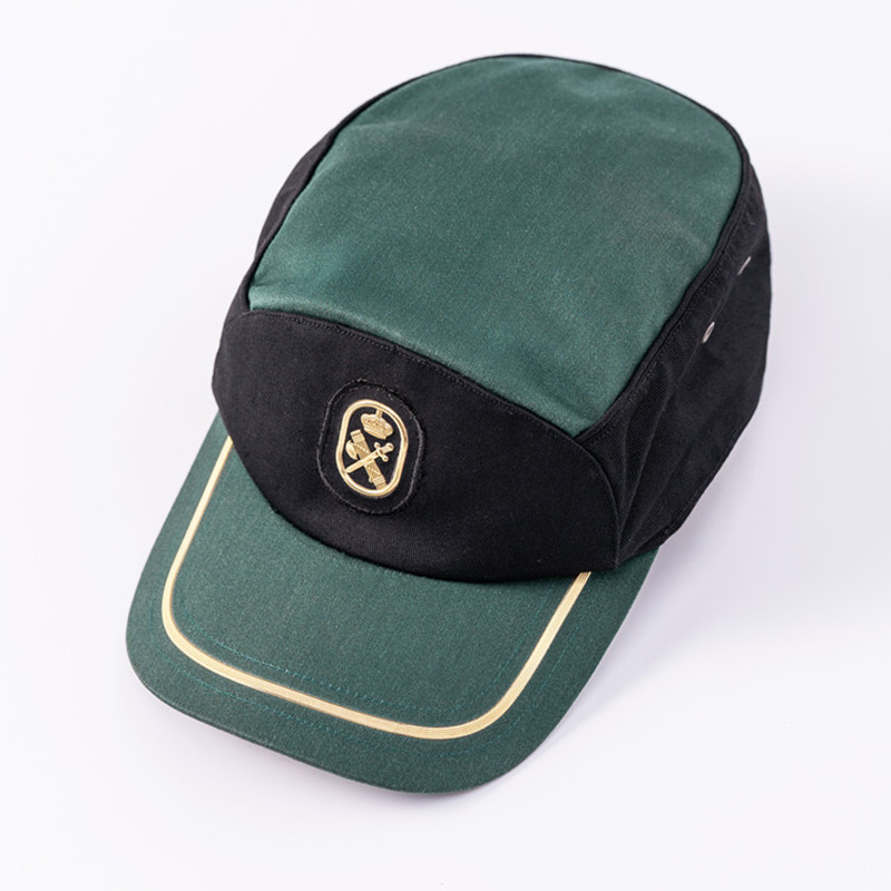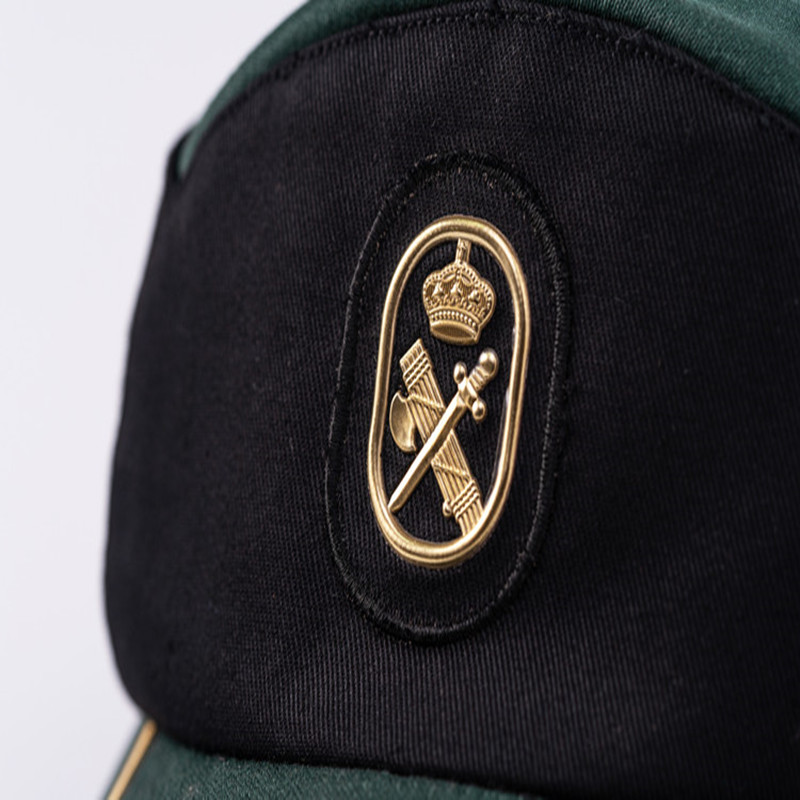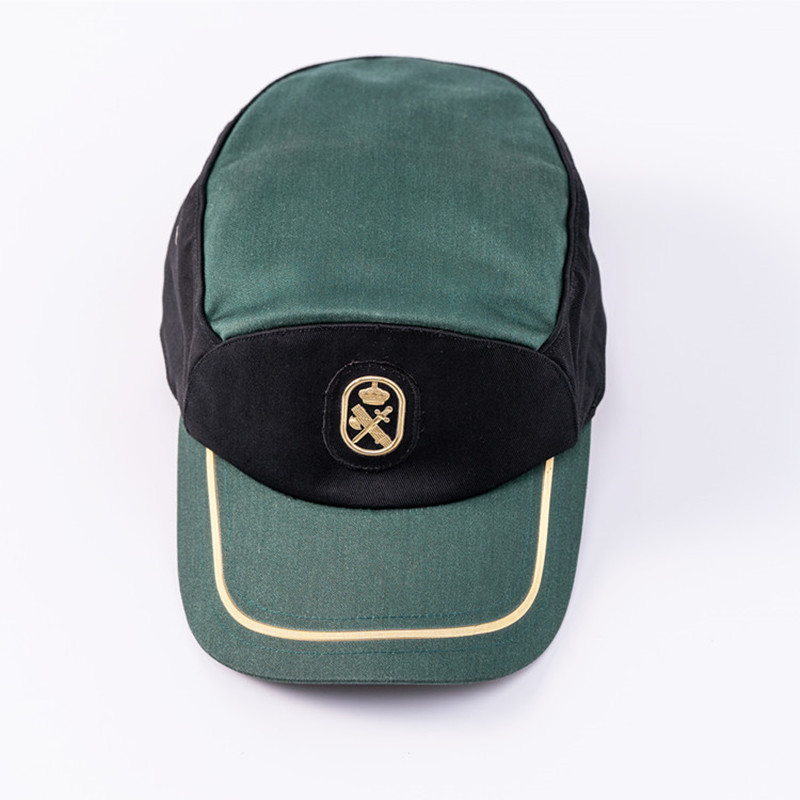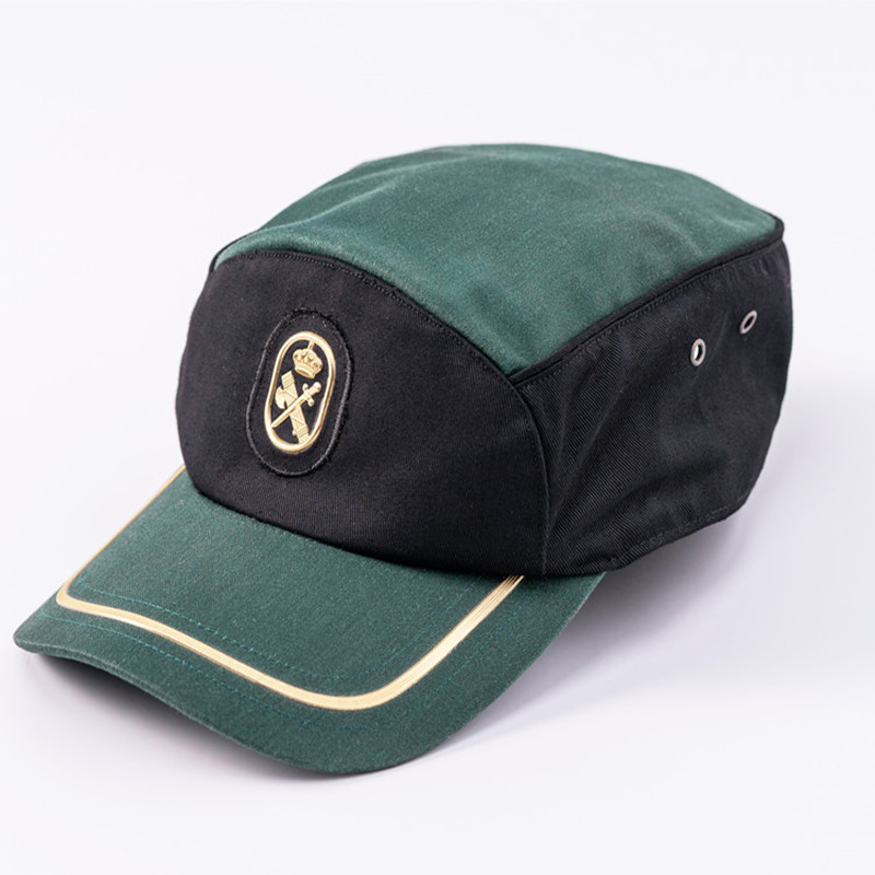 Thep cap is a semi-sports-type cap with curved peak, completely lined, with an inner band and front with foam filling to give it consistency. It is comprised of: headpiece, peak, regulating system and sweat band.